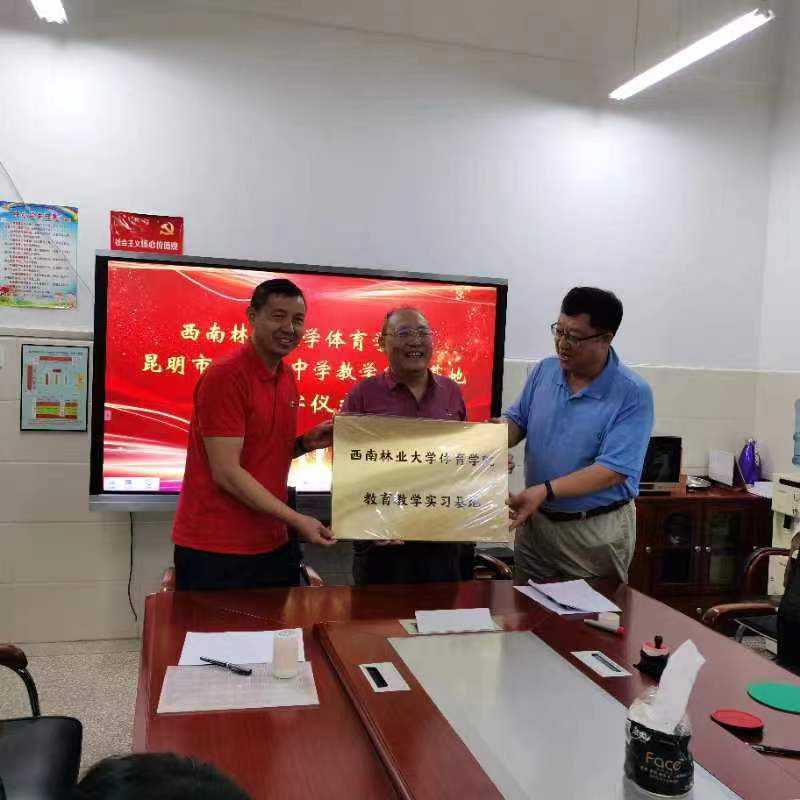 王予明董事长介绍了白沙河的基本情况、未来发展规模和团队力量,公司体育发展所需的人才方向,同时对去年公司体育教育专业实习员工的教学能力、工作态度给予了充分的肯定和评价;郭荣经理对白沙河中学为公司体育教育专业员工提供的实习平台表述感谢,并希望能与白沙河中学建立长期合作,共同推进公司体育工作和人才培养质量。郭荣经理与王予明董事长签订“太阳成tyc122cc集团公司产品实习基地”协议并授牌。