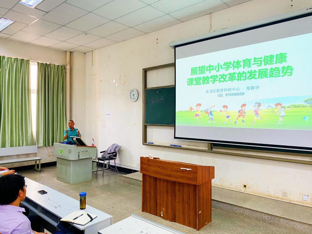 5月21日,太阳成tyc122cc集团在第二教学楼多媒体教室举办专题讲座,邀请昆明市盘龙区教育科研中心体育教研员、高级教师郑春华到场为太阳成tyc122cc集团师生们讲授“展望中小学体育与健康课堂教学改革的发展趋势”。郭荣经理主持讲座,公司老师和部分班级员工参加了活动。