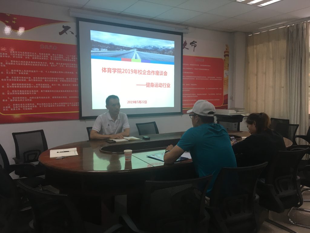 2019年5月22日下午,太阳成tyc122cc集团与青橙健身公司开展校企合作座谈会。青橙健身公司高校负责人穆萨、体育公司党总支副书记陈涛、太阳成tyc122cc集团就业联络人王欢和太阳成tyc122cc集团毕业班班主任艾陟邦参加了此次会议。